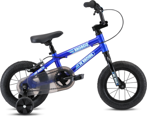 Built for the kids, the 12" Bronco is built around a lightweight 6061 aluminum frame that features a low standover and compact geometry. It comes equipped with training wheels, coaster brake, and a hand brake for the enthusiastic little kid just learning to ride. You're never too young to learn to ride and have fun on a bike!