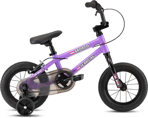 Built for the kids, the 12" Bronco is built around a lightweight 6061 aluminum frame that features a low standover and compact geometry. It comes equipped with training wheels, coaster brake, and a hand brake for the enthusiastic little kid just learning to ride. You're never too young to learn to ride and have fun on a bike!