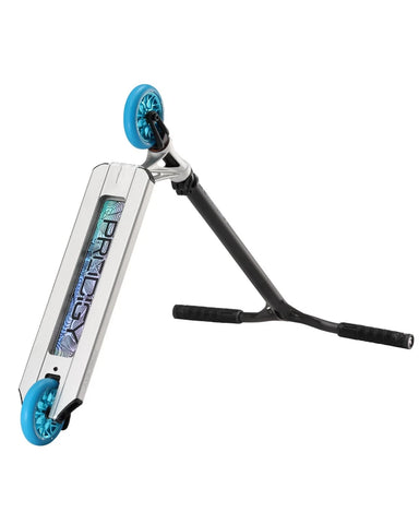 The Prodigy X ONE - PX ONE for short is the eleventh series in the PRODIGY line, built upon 10generations and 14years of professional-level complete scooters.The massive upgrades from PX continue including -Ex tech extrusion with its stealth lower profile, wider internal walls, boxier construction featuring a high responsive concave.The deck is still with its wider dimensions 5” W x 19.5” L The PX Headtube has been refined maintaining its increased contact with the deck with a now added durable anchoring weld to ensure this deck can take anything you throw at it. , Grip tape with increased grit count, Durable nylon deck plugs and V2 Nylon brake system, IHC LOW stack headset compression cap with pro level bearings to keep you spinning with all of it rolling on the SECTOR 120mm x 26mm PU wheels 86A.